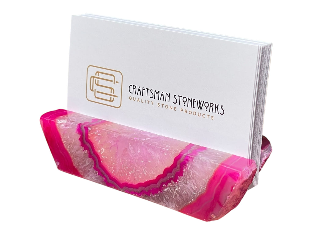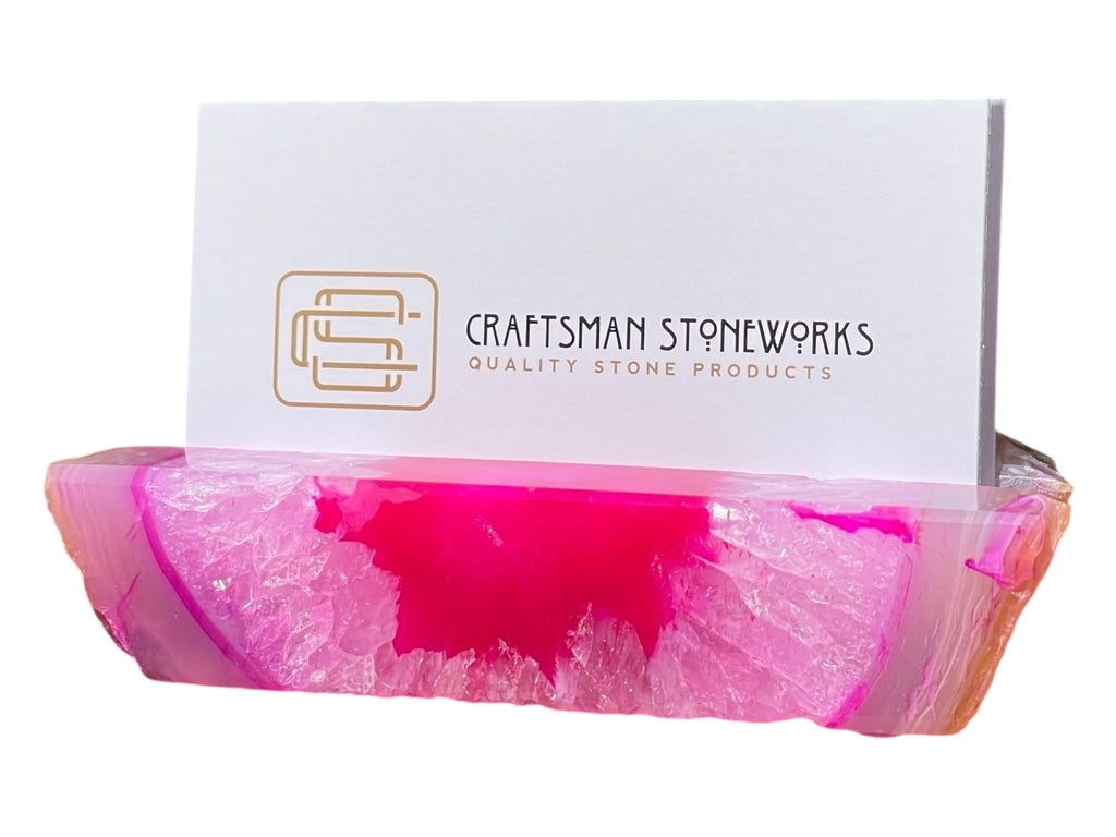 Introducing the Craftsman Stoneworks Handcrafted Pink Dyed Agate Business Card Holder from Brazil