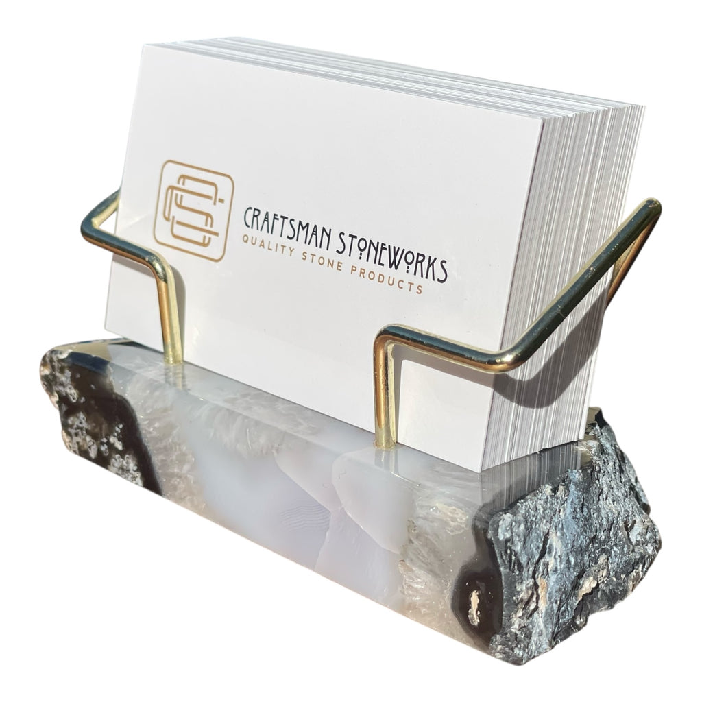 Premium Black Agate Desk Display Stand with Gold Wire Holder for Professional Office Organization - Holds up to 70 Cards